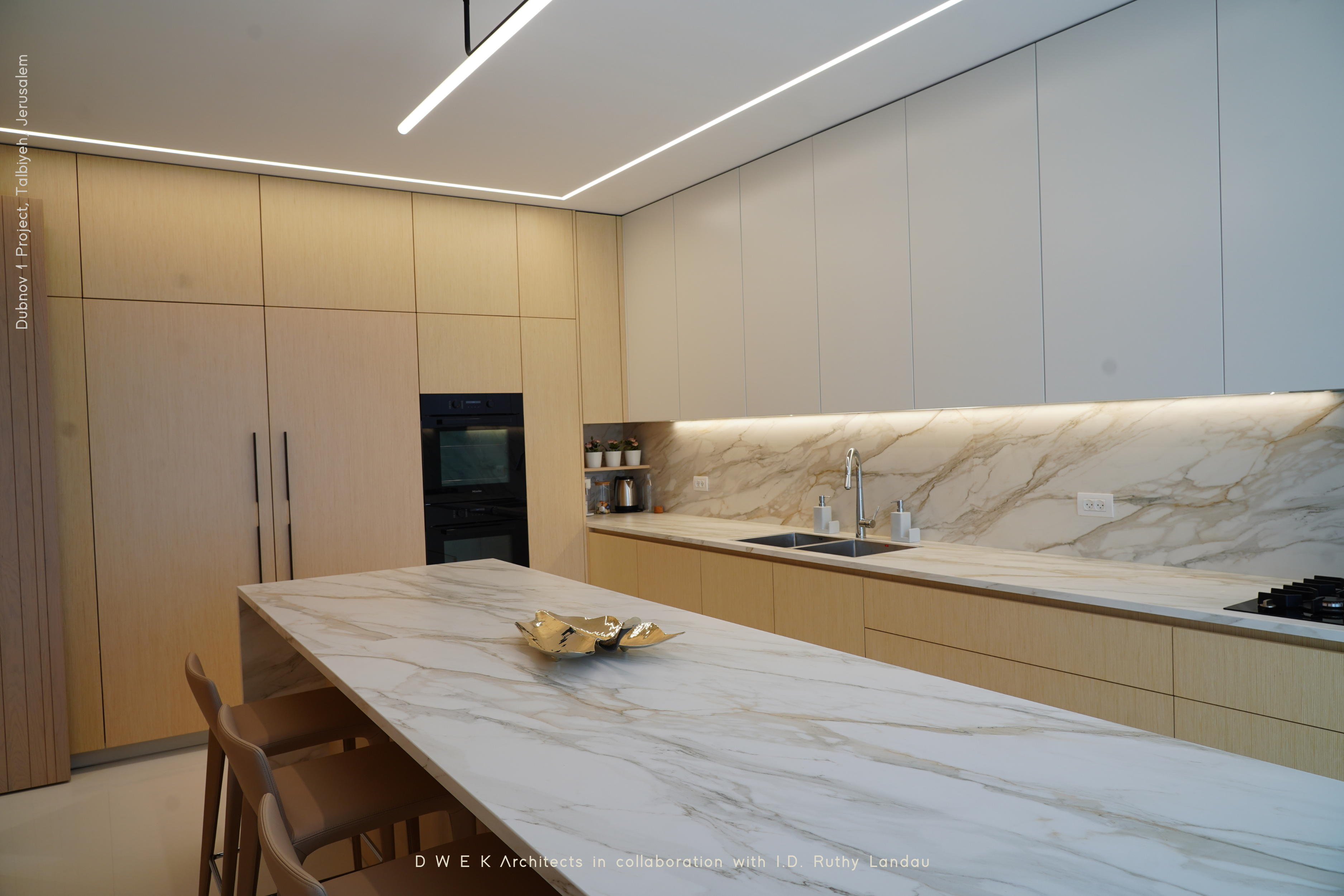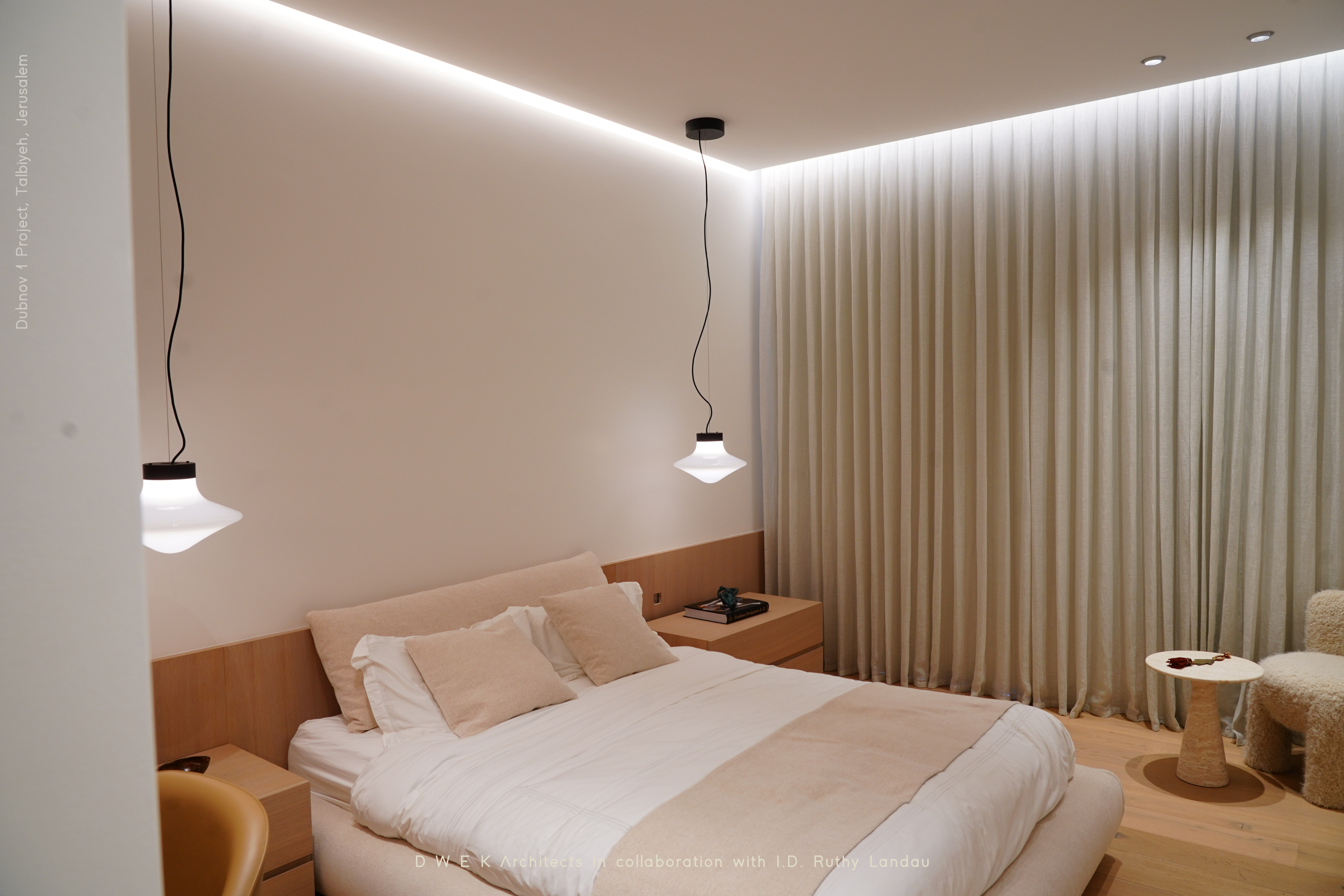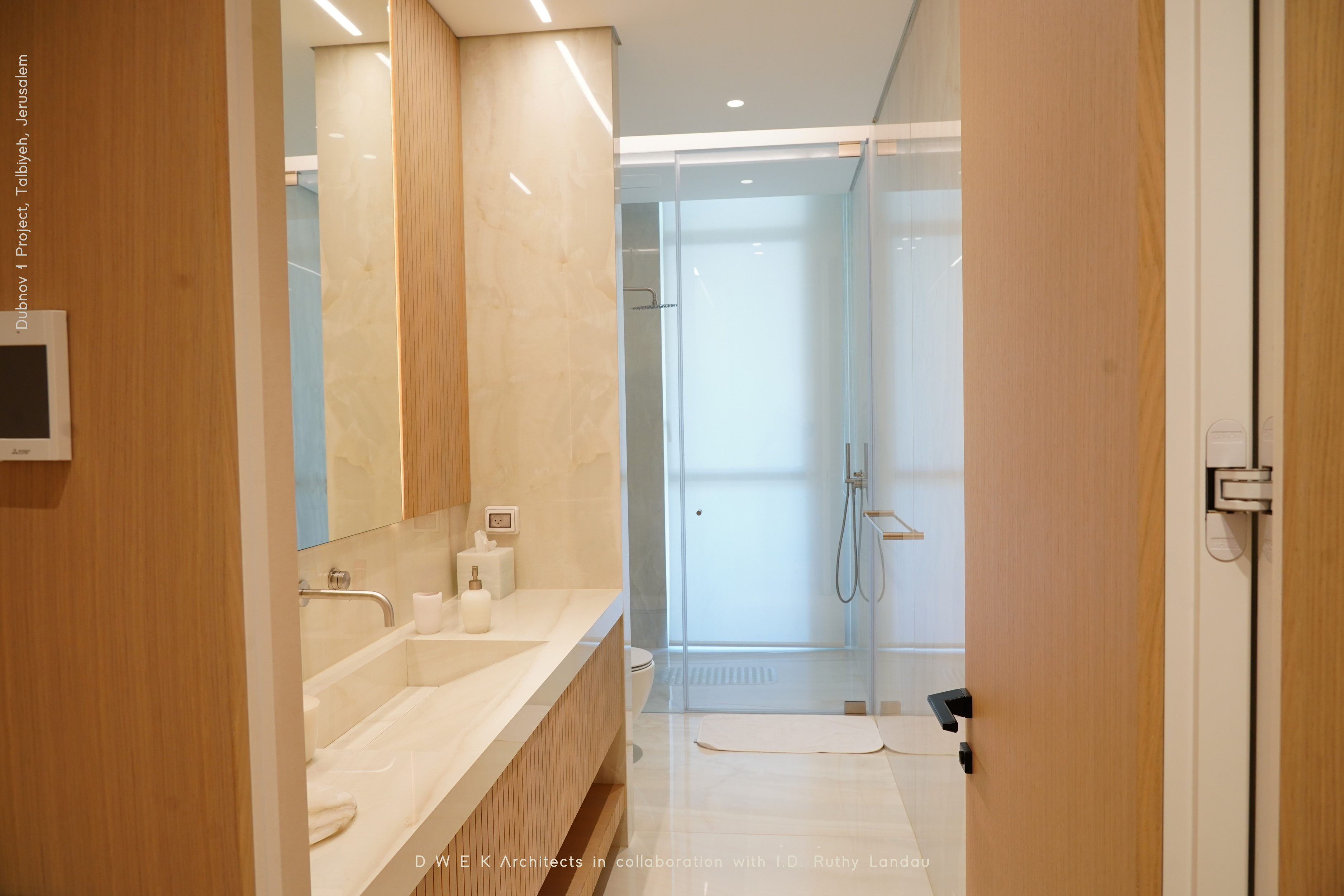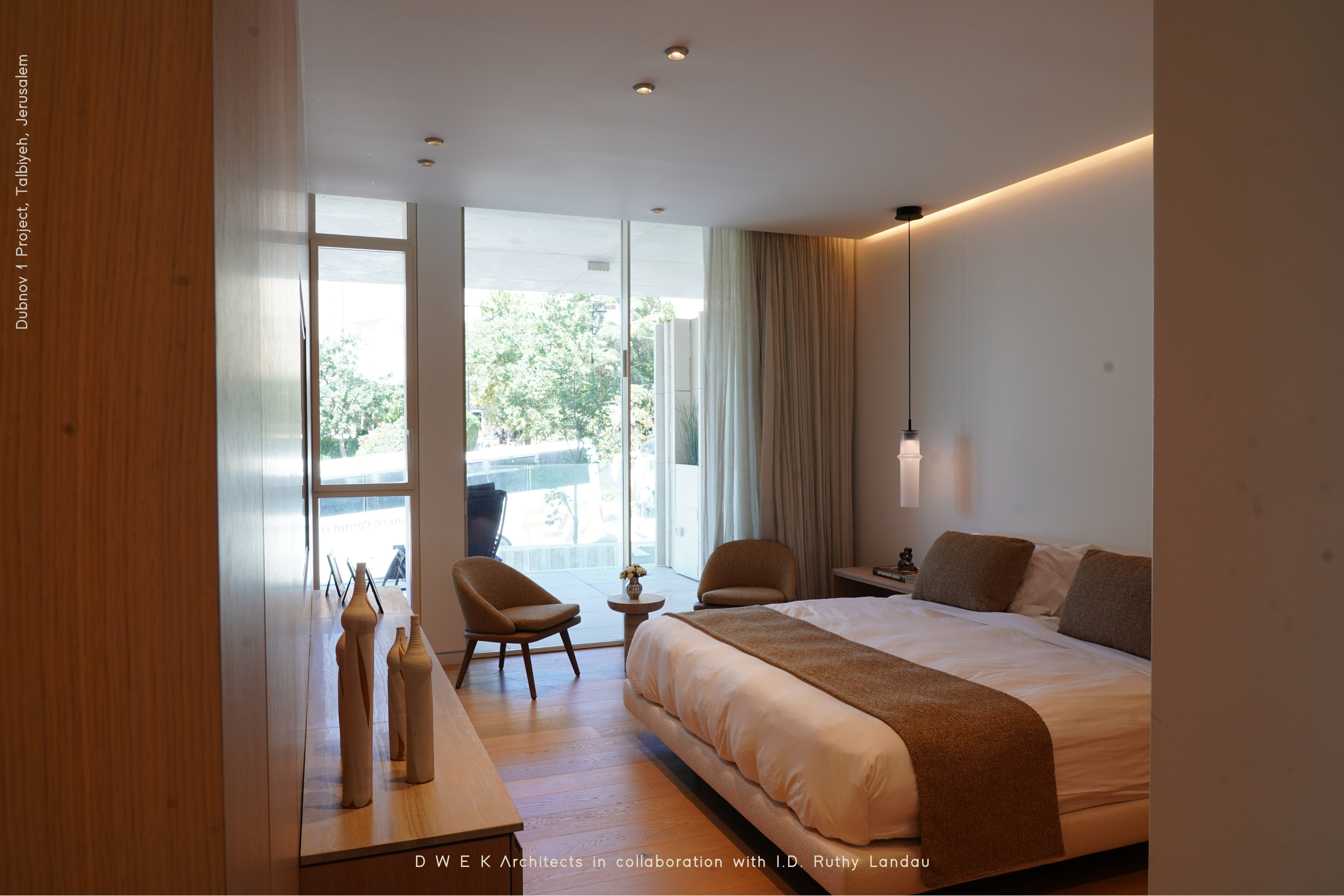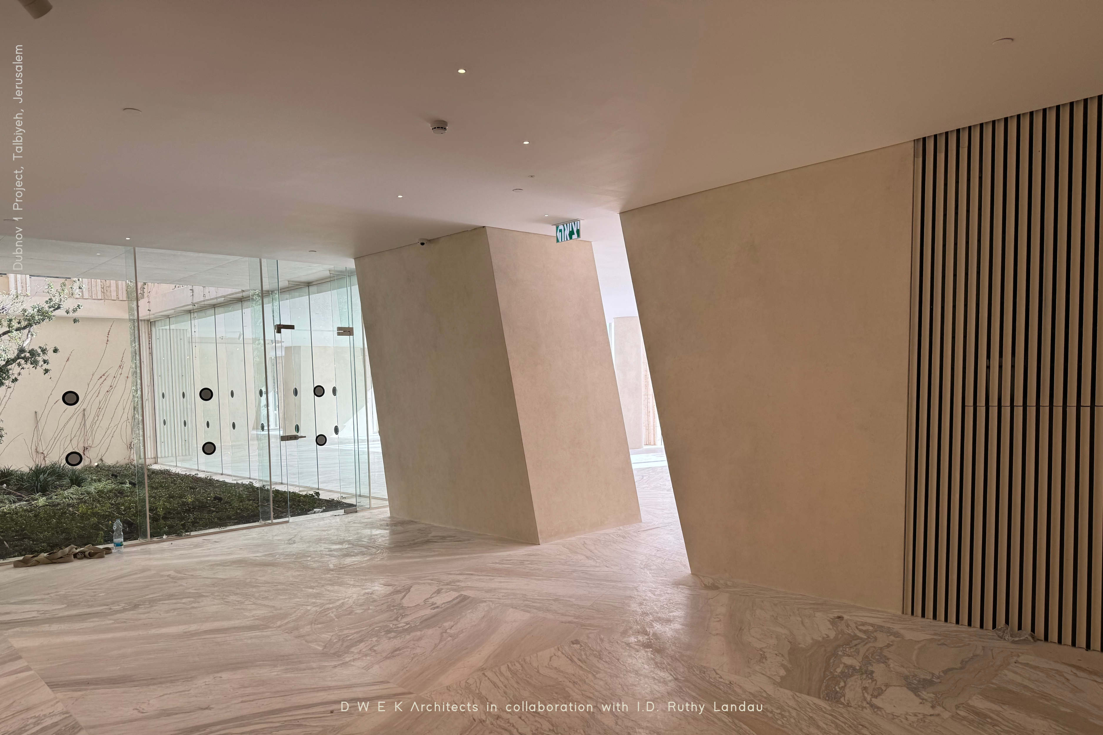 Dwek Architects, together with I.D. Ruthy Landau, whose interior design leadership shaped the palette, spatial flow, and detailing, delivered an end-to-end scope aligned with the building’s architecture and open-space ethos: flowing, light-filled rooms, natural materials, and precise carpentry, all with careful attention to daylight, ventilation, and durable low-impact finishes. Conceived and realized as a single, joint creation by Dwek Architects and I.D. Ruthy Landau.